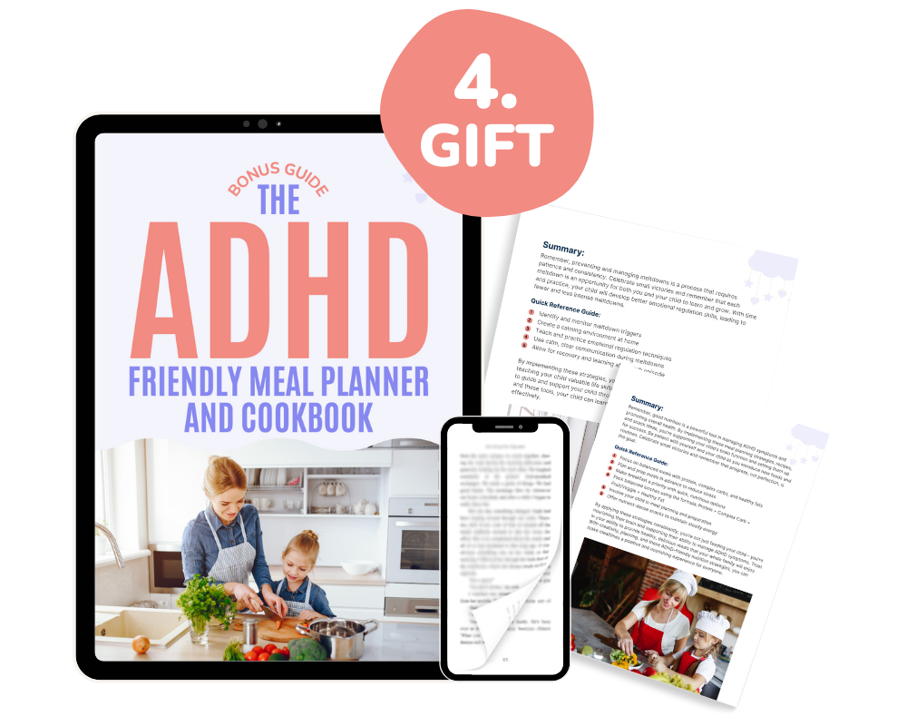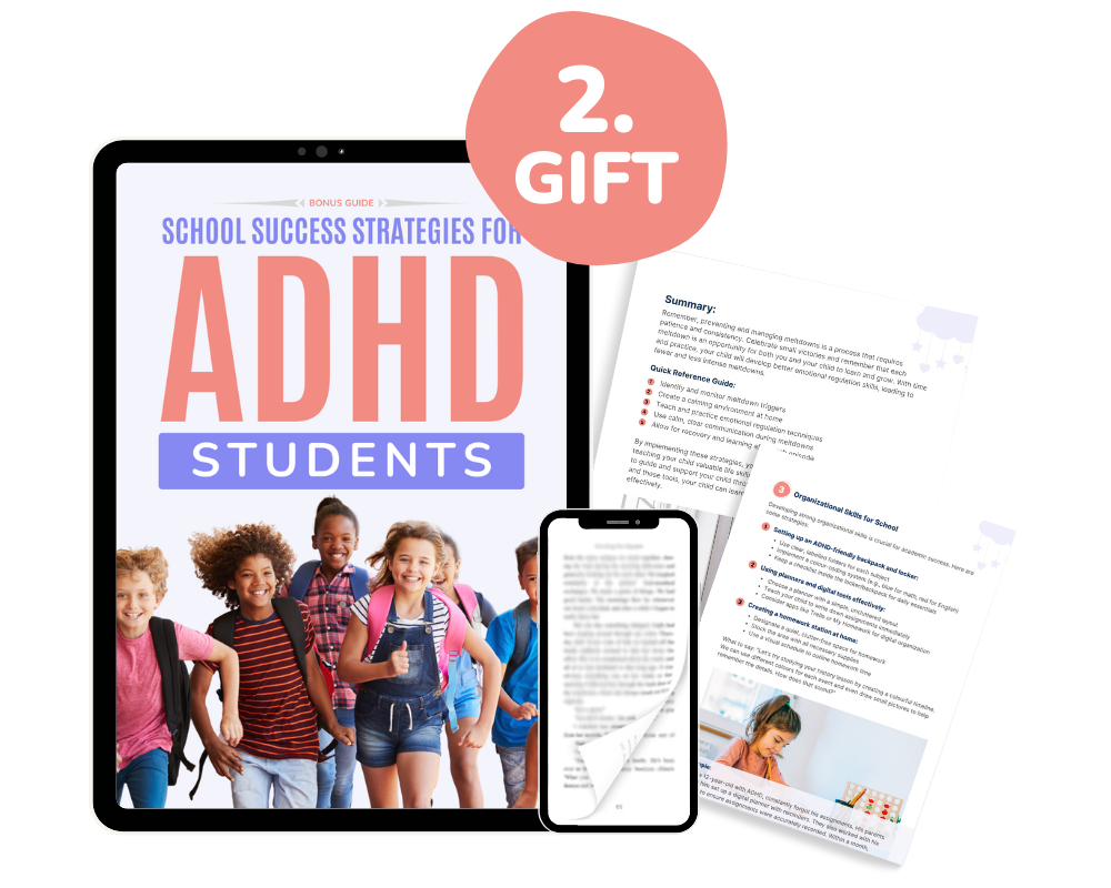 • PLUS 5 FREE gifts that address your most pressing ADHD parenting challenges (total value of $184).