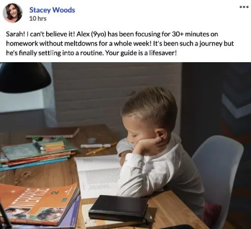 We were at our wit's end before finding Sarah's guide. The step-by-step approach was easy to follow, even during hectic days. Our son's focus has improved dramatically, and family time is enjoyable again. Sarah's method is a lifesaver for ADHD families.